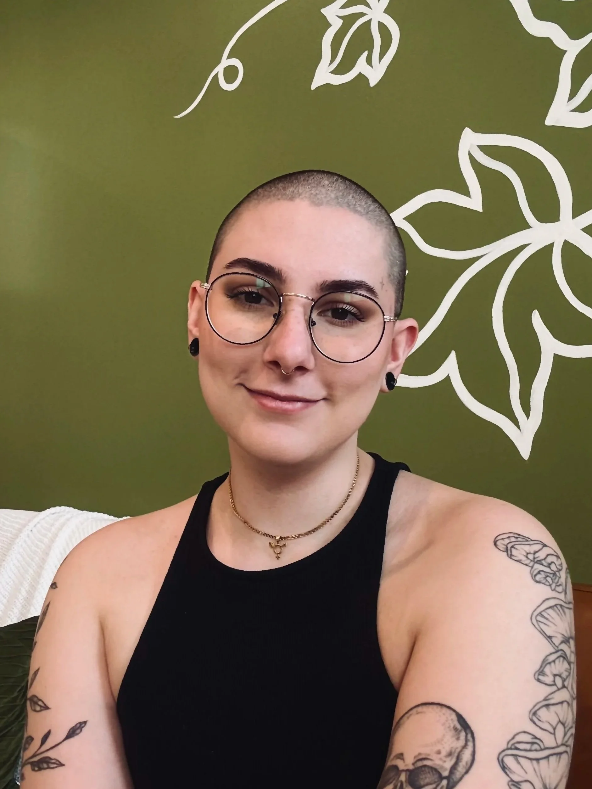 Originally from Long Island, NY. Cyn moved to Rochester after graduating from Alfred University with a Bachelor of Fine Art and a minor in Art History. Their tattoo career started in 2022, exploring a variety of styles but specializing in illustrative black and grey tattoos. Cyn has a passion for tattooing illustrations of plants, bugs, figurative sculptures, paintings, religious imagery and ornamental designs. When not tattooing, they enjoy spending time at home with their cats.